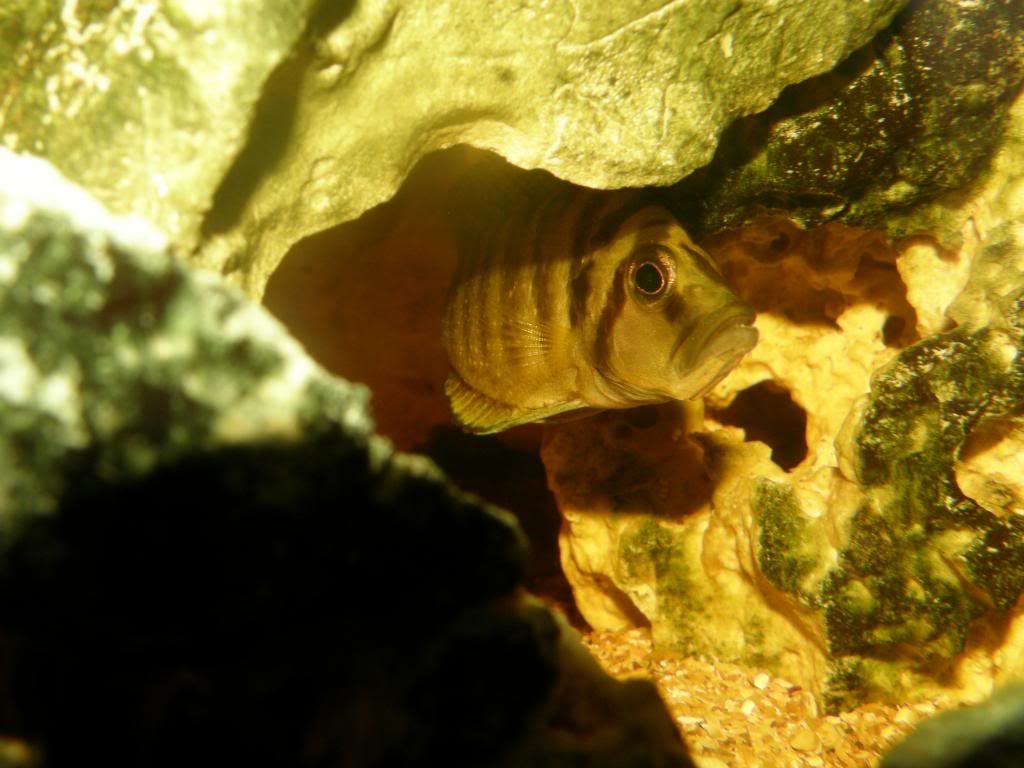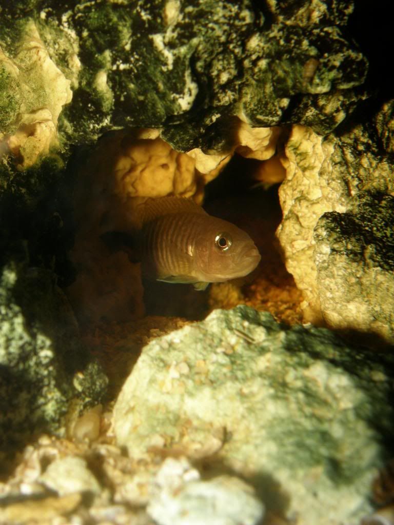 Um dos novos moradores (synodontis petricola) do Tanganiyka's Peebles :